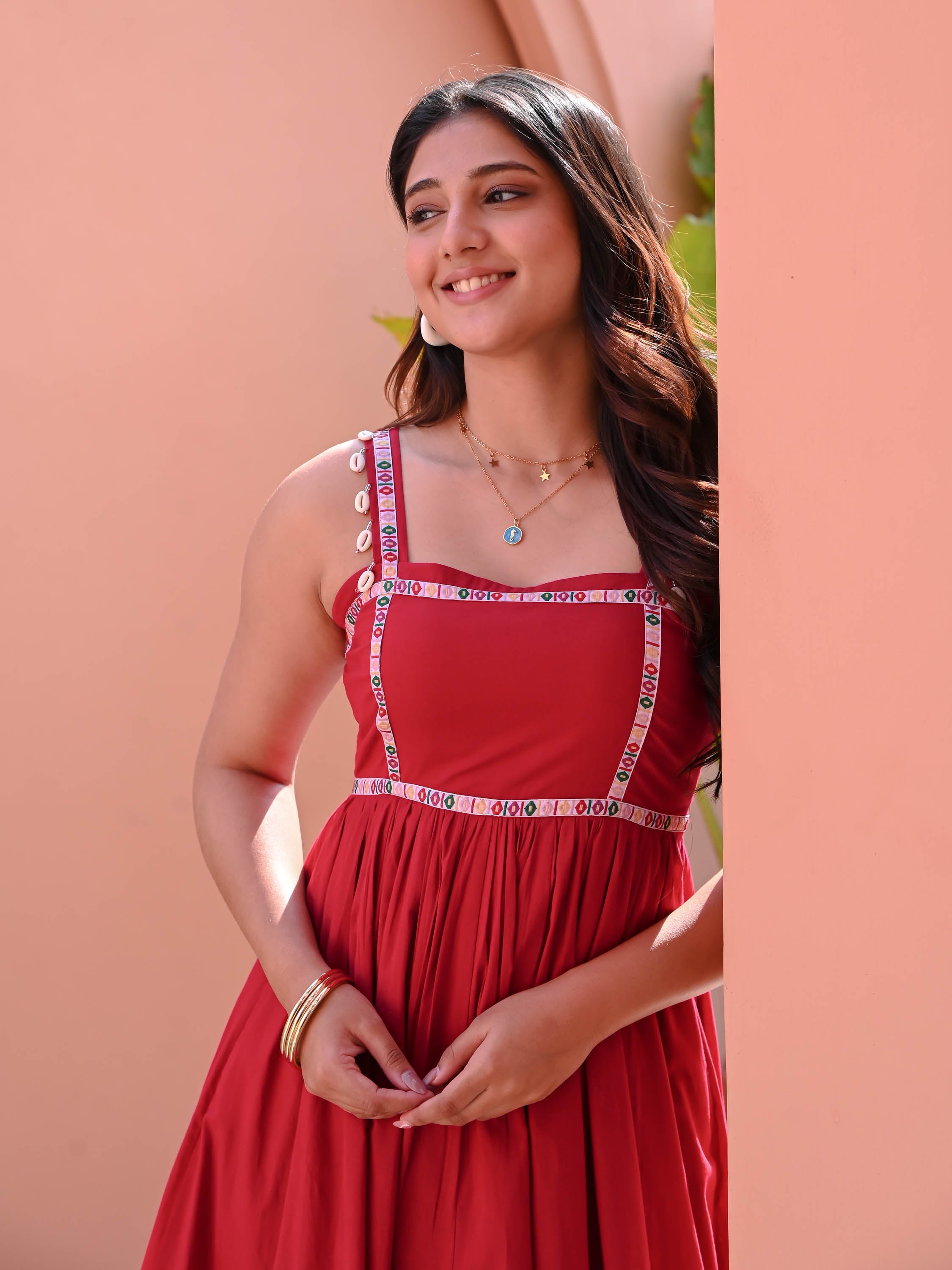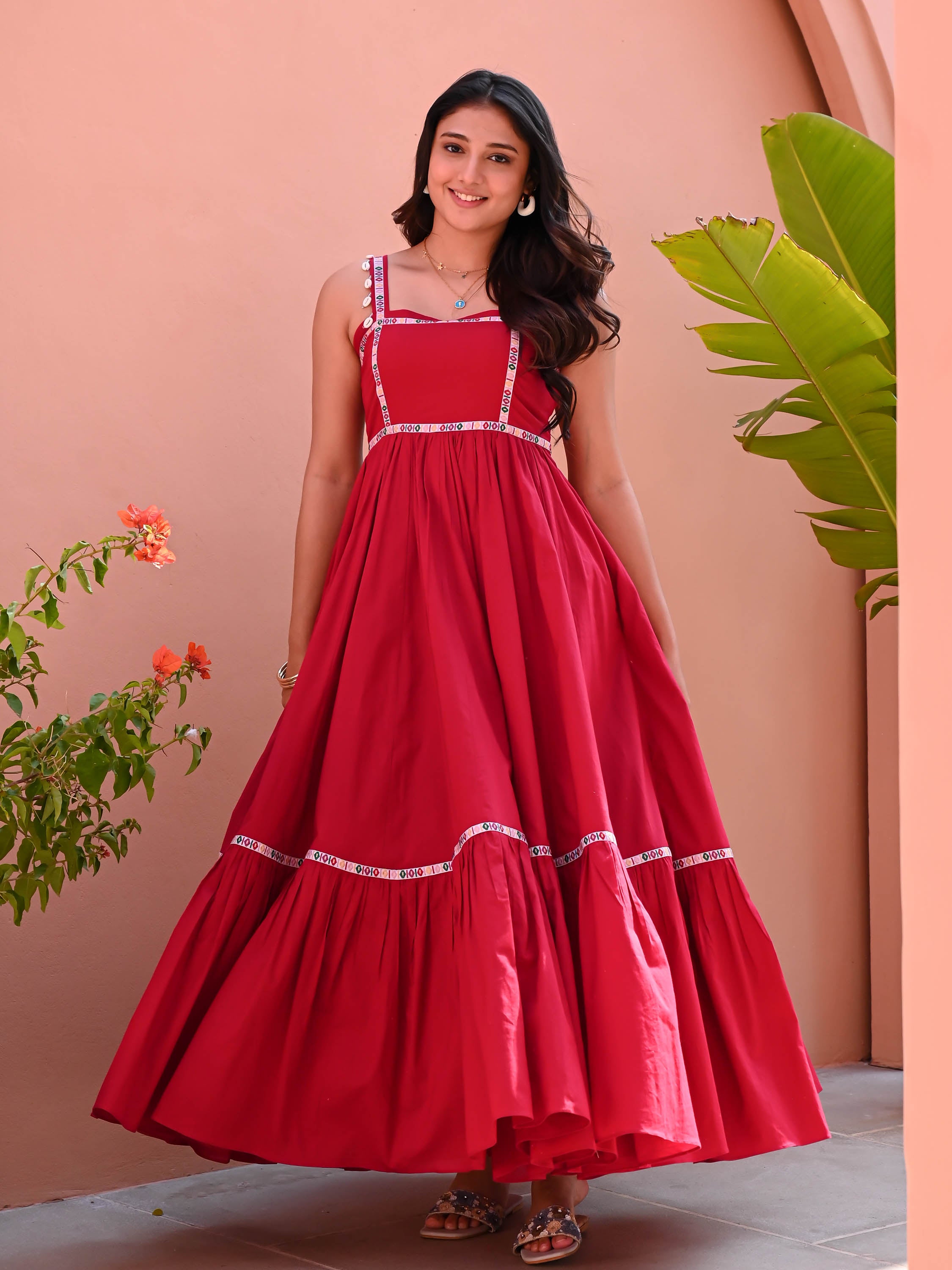 If you love a classic silhouette, our long maxi dresses in block-printed cotton or solid georgette are timeless choices that work for everything from temple visits to beach walks. If you prefer something with more personality, our Indo-western styles feature asymmetric hems, tiered skirts, and contrast borders that add visual interest without looking overdressed. And for evenings out, our festive dresses for women in georgette and chanderi fabrics bring enough elegance for a special dinner or a wedding function during your travels.