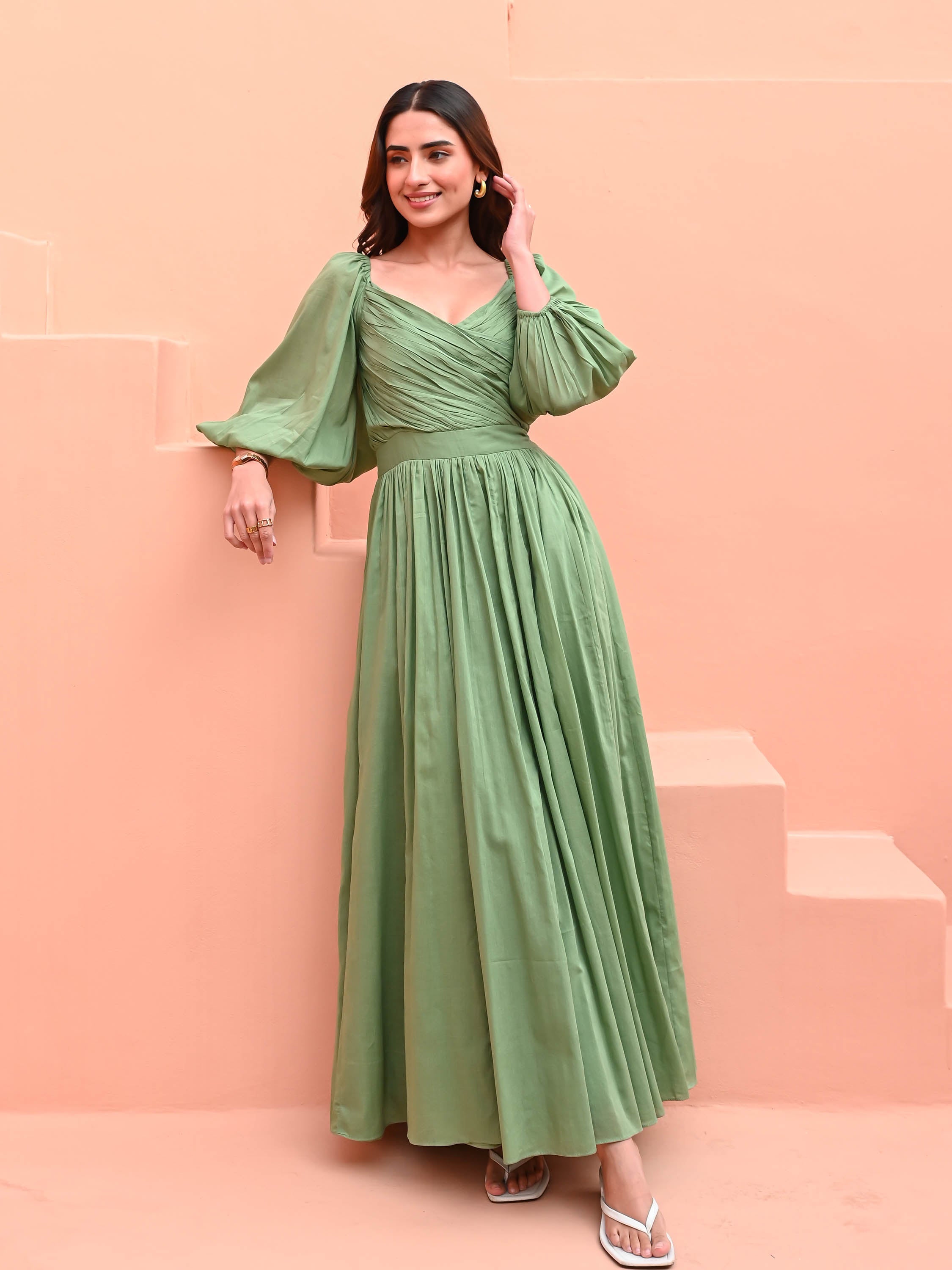 Bunaai Mint Green Sequin Maxi Dress