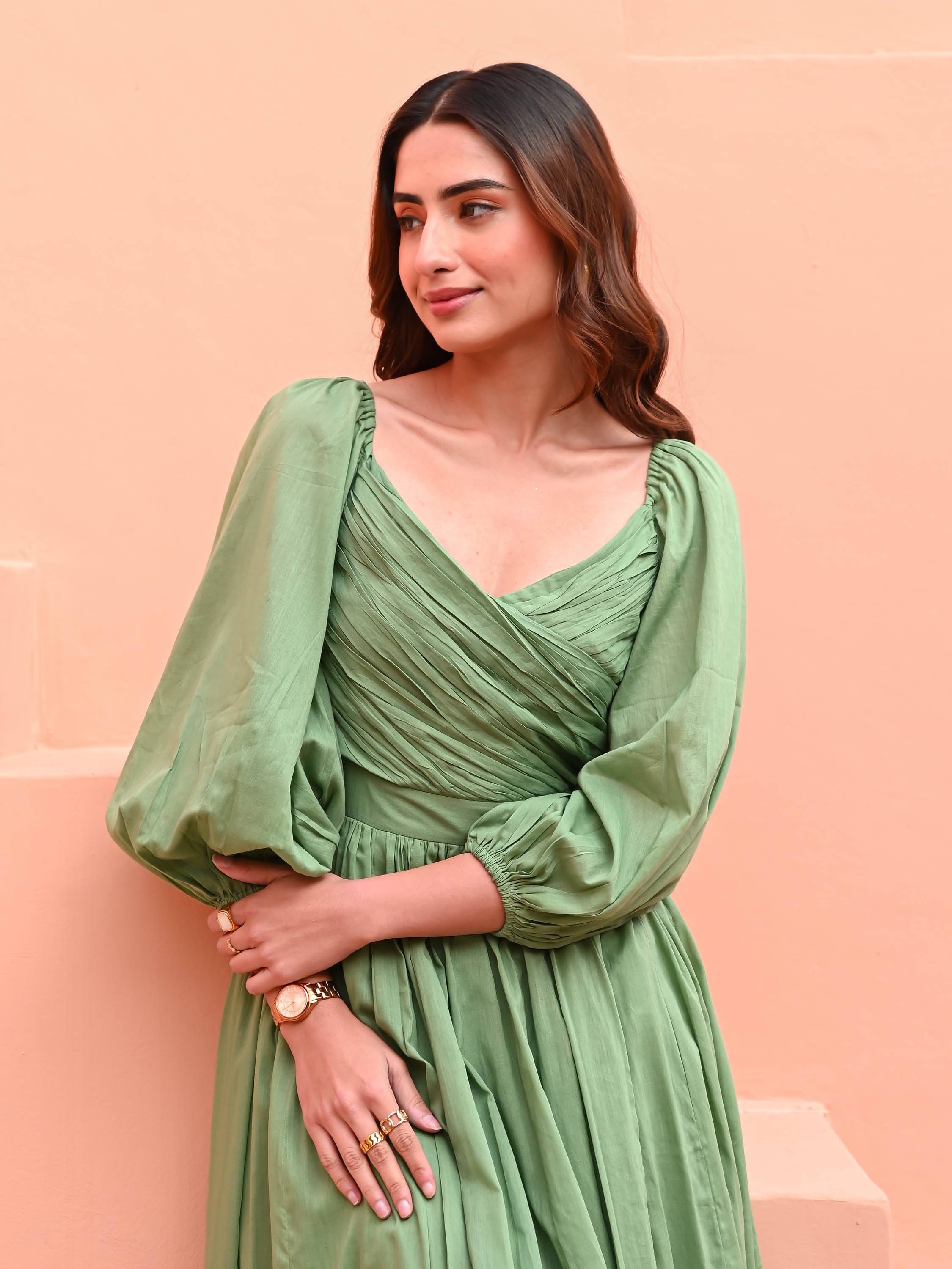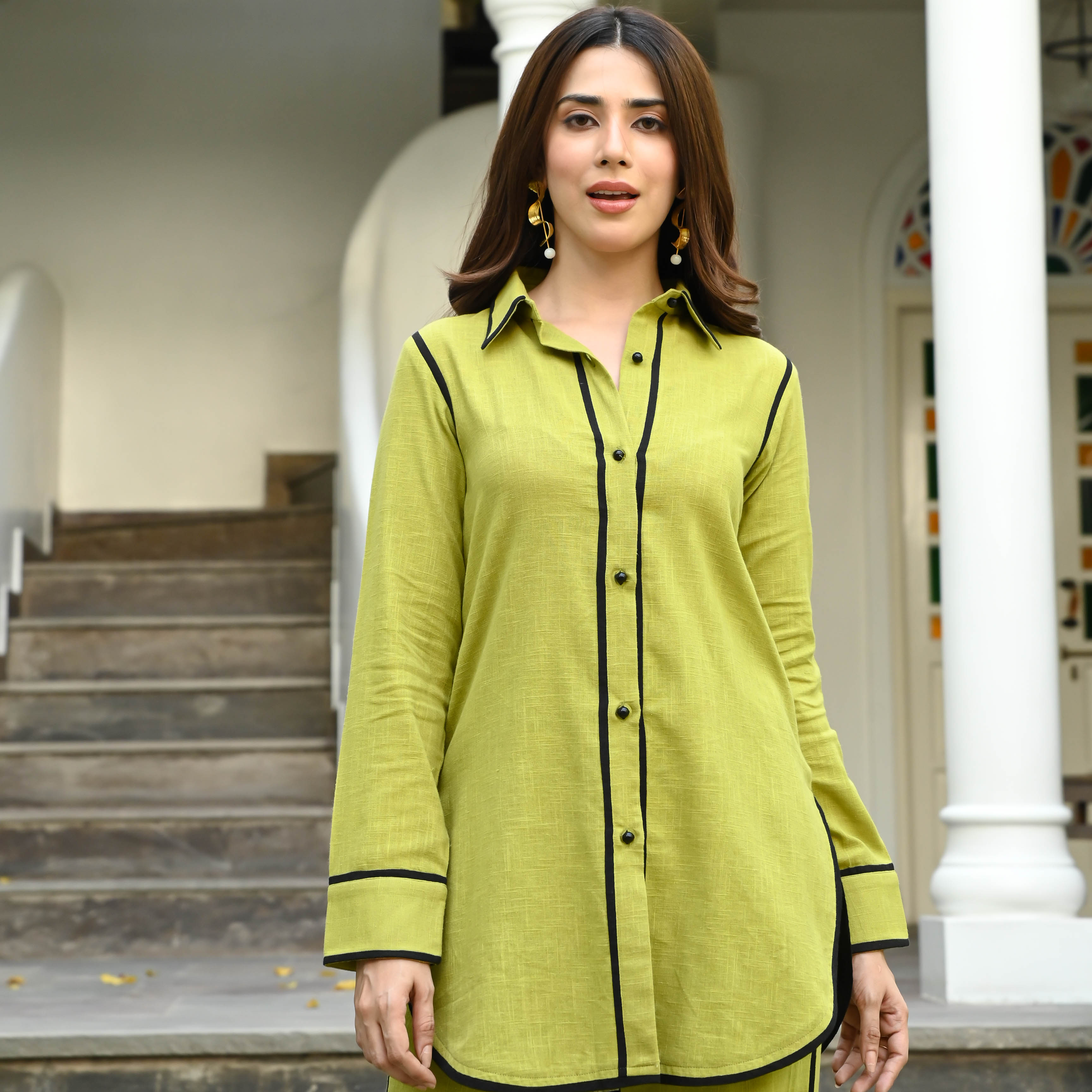 Bunaai Olive Crushed Cotton Coord Set